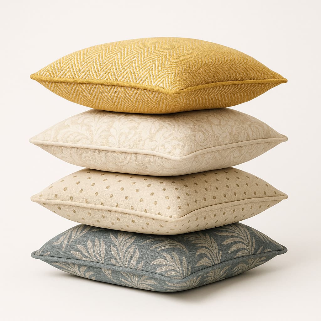 жаккардовые, плотные и комбинированные материалы для интерьерного декора;