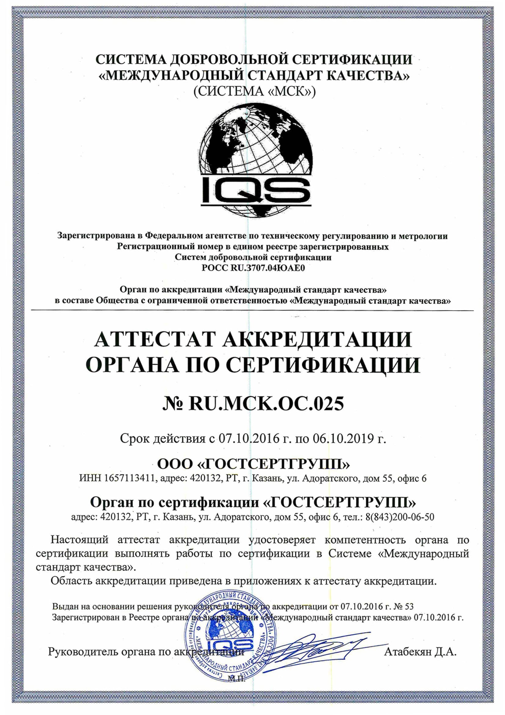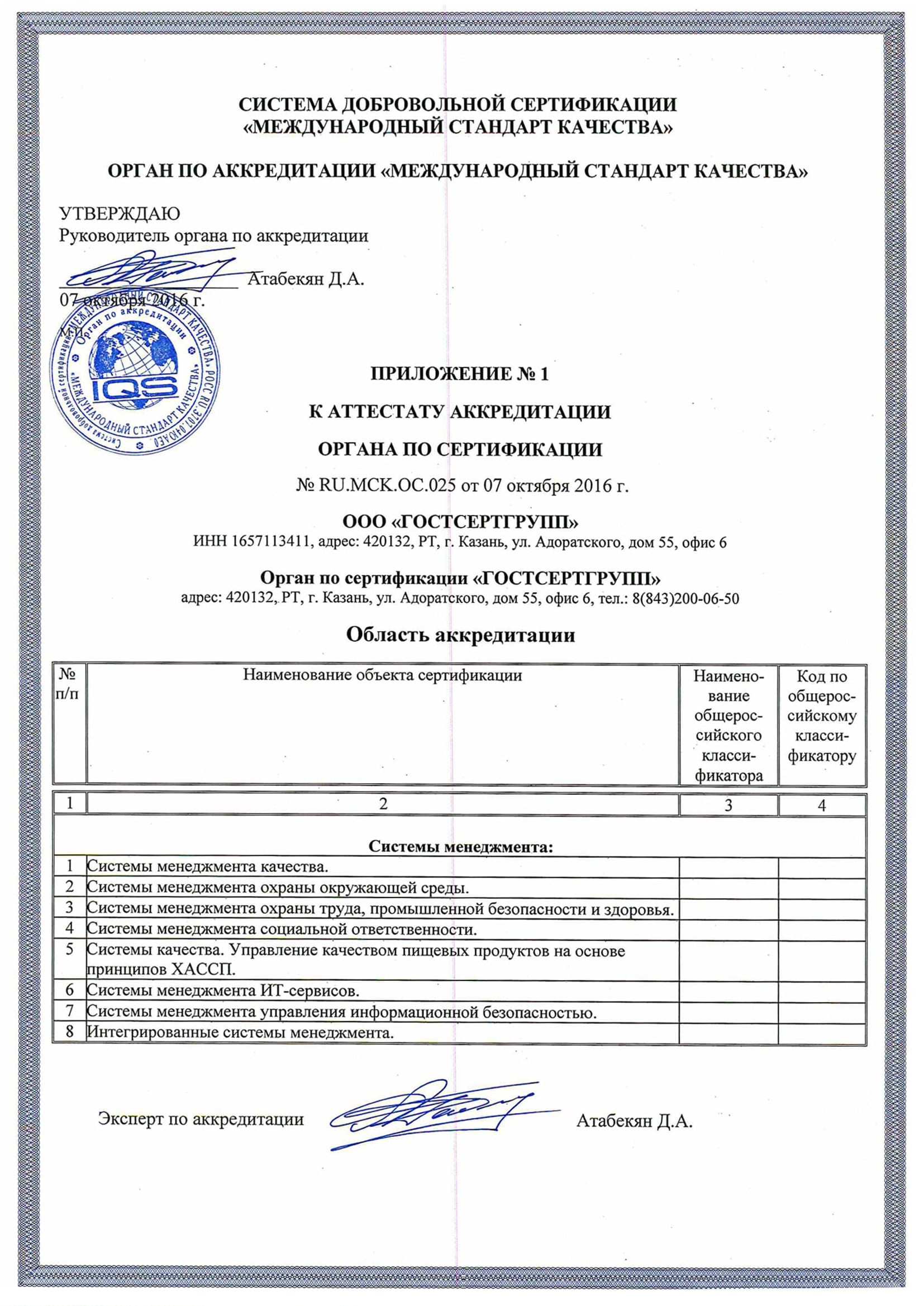 Сертификаты аккредитации